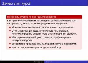 Курс лекций “Современные вычислительные системы и подходы к программированию: инструменты и языки” читает призер 2025 года академического турнира ИТ – марафона “Роснефть”, к.ф.-м.н., н.с. ИВМ РАН Дмитрий Александрович Желтков. Видео и презентации лекции выложены в группе ИВМ РАН Вконтакте.