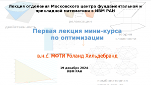 Курс лекций по оптимизации в.н.с. МФТИ Роланда Хильдебранда: Первая лекция (19 декабря 2024 г.), Вторая лекция (23 декабря 2024), Третья лекция (11 февраля 2025 г.).